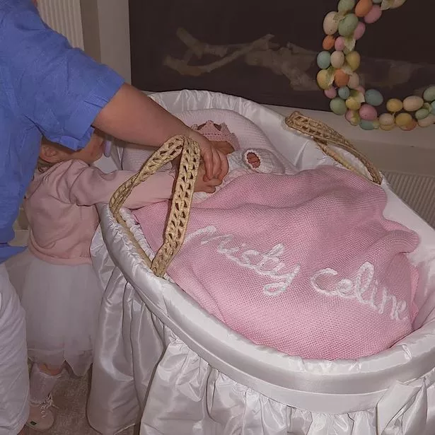 One charming photo shows Misty wrapped in a white knitted cardigan with her name embroidered in pink on the back. There were other lovely details, including a celebratory cake decorated with the words “baby girl” to mark the occasion.