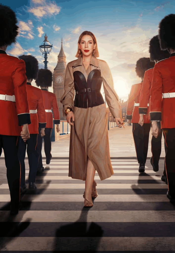 The announcement featured Katherine confidently walking across a zebra crossing near Buckingham Palace, with the caption from Hayu reading: “It’s time to reveal who’s hosting the #RHOLDN reunion… say hello to Katherine Ryan.”