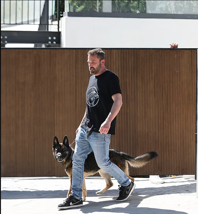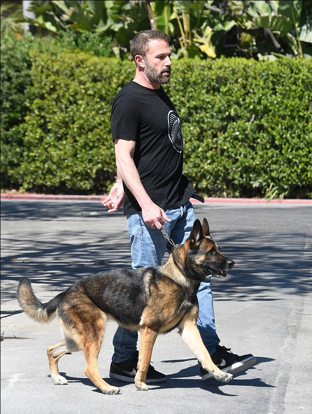 As Ben continues his search for a new home, he was spotted walking one of his German Shepherds—a security dog he added to his family earlier this year.