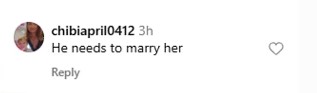 Instagram user @hot_cheetos_0001 urged, “Put a ring on it. Do it the right way,” while @chibiapril0412 chimed in, “He needs to marry her.”