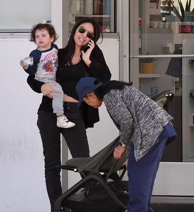 During their casual outing in Los Angeles, Al Pacino’s lookalike son Roman wore a Grateful Dead raglan T-shirt, adding a rocker vibe to the toddler’s rare public appearance. At one point, Noor Alfallah was seen multitasking—carrying Roman on her hip while taking a phone call.