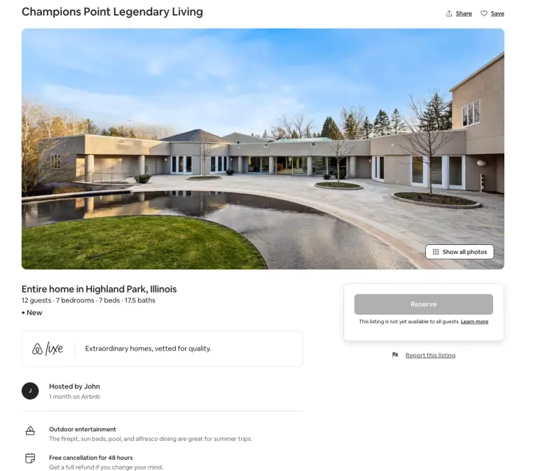 His former mansion in Highland Park, Illinois, is available for rent on Airbnb, costing at least $100,000 for a minimum seven-night stay, according to the Daily Mail.
