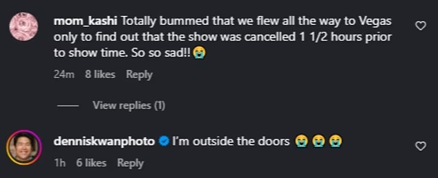 Fans were disappointed by the sudden cancellation, with many expressing their sadness and frustration online. Some flew to Vegas only to find out the show was canceled shortly before it started, while others showed support and wished her a speedy recovery. One fan hoped to catch a fall show instead.