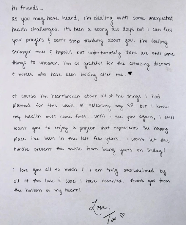 “I love you all so much & I am truly overwhelmed by all of the love & care I have received. Thank you from the bottom of my heart!” she concluded.