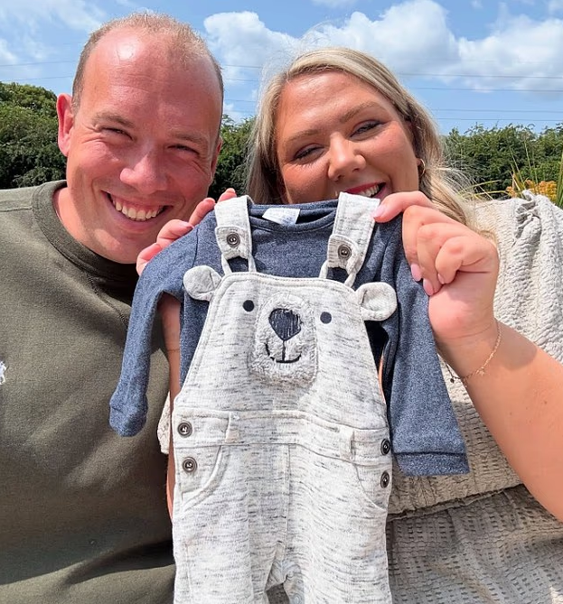 Posing with an adorable teddy bear outfit, Laura revealed she and Police Community Support Officer Matt eagerly bought the dungarees not long after she’d come off the contraceptive pill in the hope that their journey to parenthood would be swift.