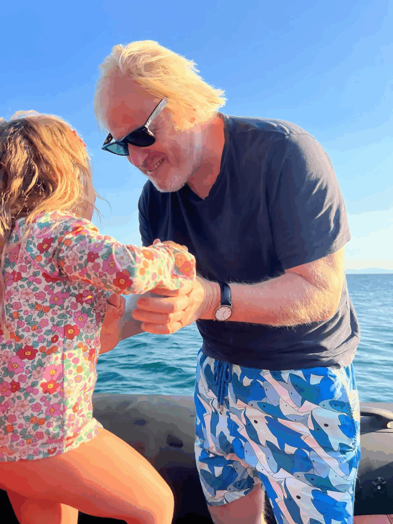 One of the photos showed Boris and his son in a boat, heading out together on the Aegean Sea.