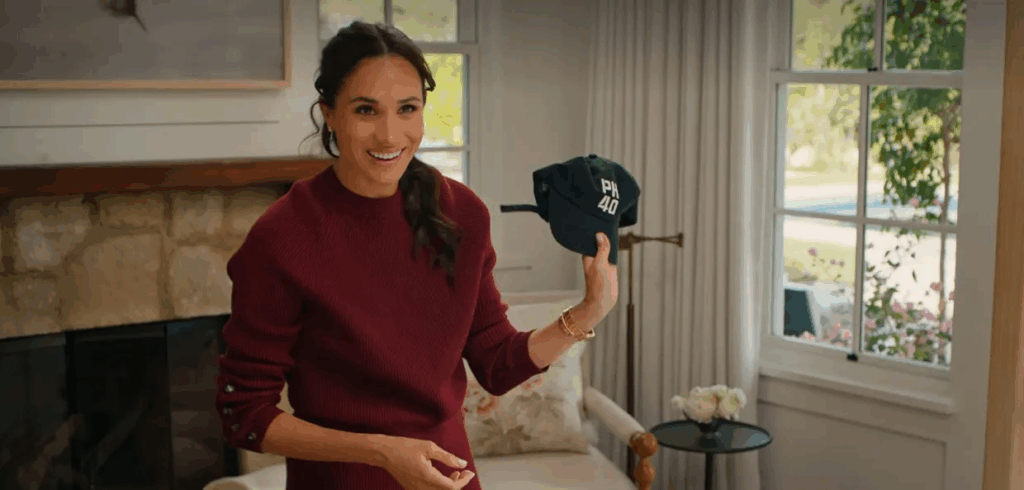 On a Malibu day trip with friend Heather Dorak, Meghan spent several minutes discussing how she packs her bag, mentioning she brings “things that bring me joy,” including a blue PH40 baseball cap she made for Harry’s 40th birthday—PH standing for Prince Harry—even though they stepped down from royal duties in 2020.