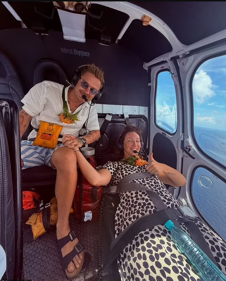 Isabelle was airlifted by helicopter to the mainland, a 30-minute flight, with her husband Alex Richards for emergency treatment.