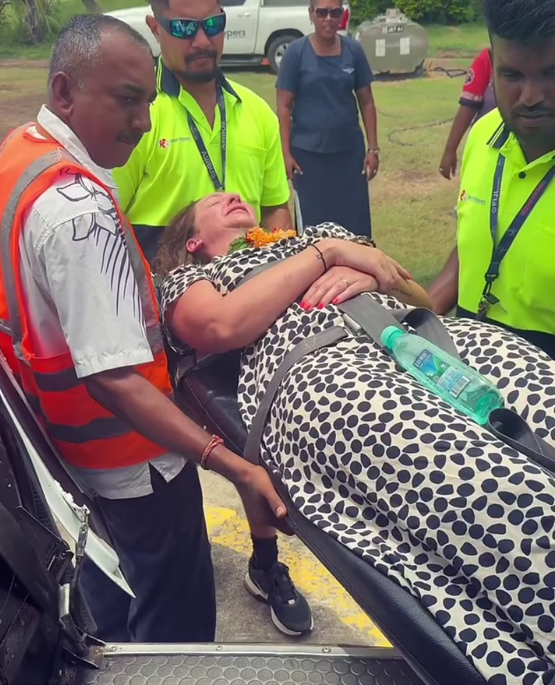 Since the medical helicopter only operated during daylight, local Fijians carried her on a stretcher for 2km uphill in the dark, then onto a boat and finally to her hut.