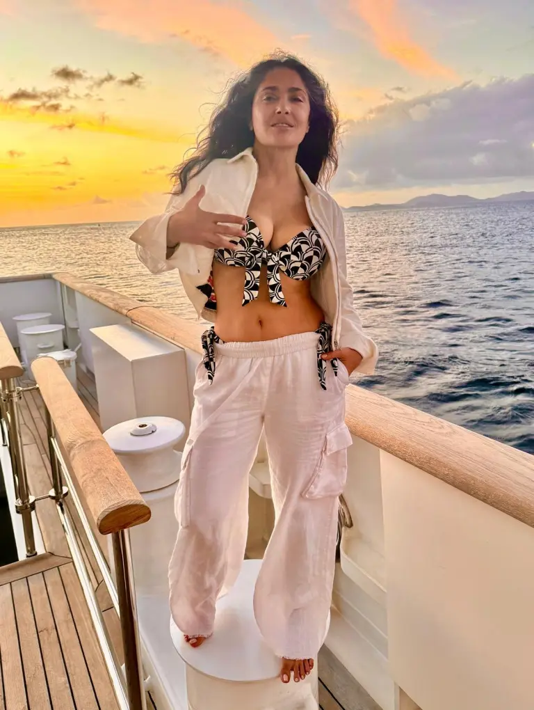 Known for her stunning bikini moments, Hayek also turned heads earlier this year as a cover star for the Sports Illustrated Swimsuit Issue 2025.