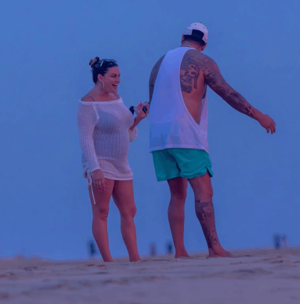Gharachedaghi commented on the post, referencing Cartwright’s “belly” and writing, “No shade, but is she pregnant too? I mean, he’s holding her belly and the belly is definitely bellying.”