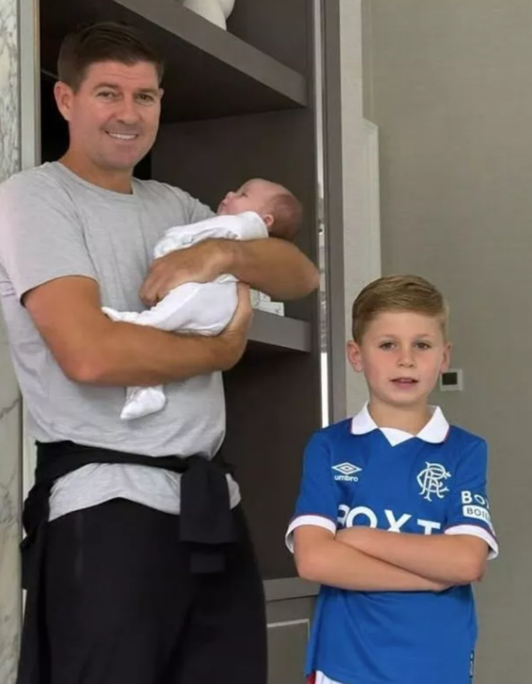 Steven and Alex Gerrard have daughters Lilly, Lexie, 19, Lourdes, 14, and a son named Lio, eight. A new photo of baby Lila-Grey shared by Lilly today shows the baby in a white baby grow being held by Gerrard, with uncle Lio stood next to them wearing a Rangers top. A second snap showed the baby asleep as Lilly wrote “I’m so obsessed with you.”