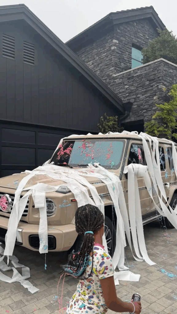 Sharing an Instagram video on Saturday, September 13, Kylie, 28, showed her Mercedes-Benz G 580 wagon completely covered in toilet paper and bright Silly String. In the video, she shouted, “You bitch! You little bitch!” as Khloé, 41, was seen hiding before quickly running back into the house.