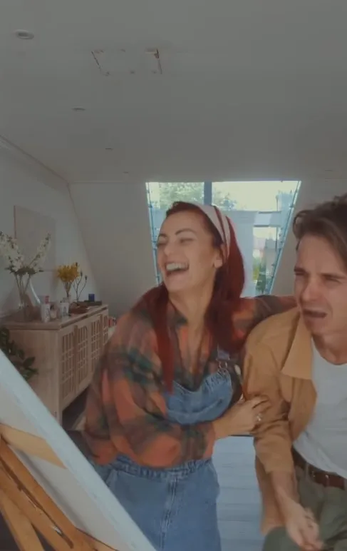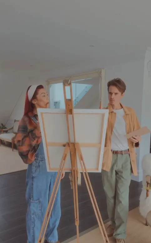 In the clip, the couple stood behind a wooden easel, painting a surprise design on the canvas, set to Elton John’s Tiny Dancer, a likely nod to their time together on the BBC’s Strictly Come Dancing.