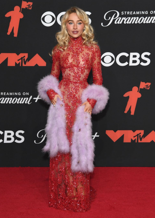 She’s ARRIVED! Sabrina Carpenter showed up on the 2025 Video Music Awards red carpet looking iconic per usual. The Man’s Best Friend singer stepped out in a totally sheer beaded red gown by Valentino (obsessed with the turtleneck) paired with a fuzzy purple boa. Her hair? Signature loose waves, obviously. TBD on who made Sabrina’s gown, but we’ll update you once we have details because it’s a masterpiece. Also, it goes without saying that I need the boa in my life.