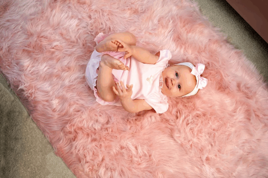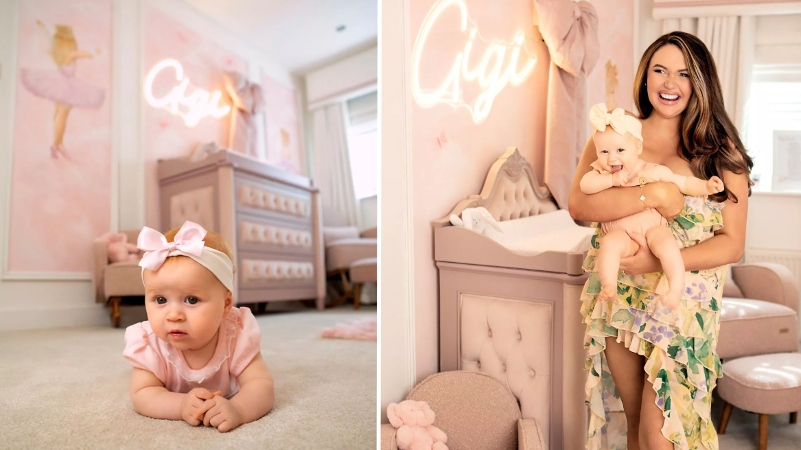 She’s gone all out with the nursery, creating a full-on pink paradise. “Everything has got to be pink, everything,” Charlotte says, revealing that even Noah and Jude’s old blue-and-grey jumparoo was donated to charity.