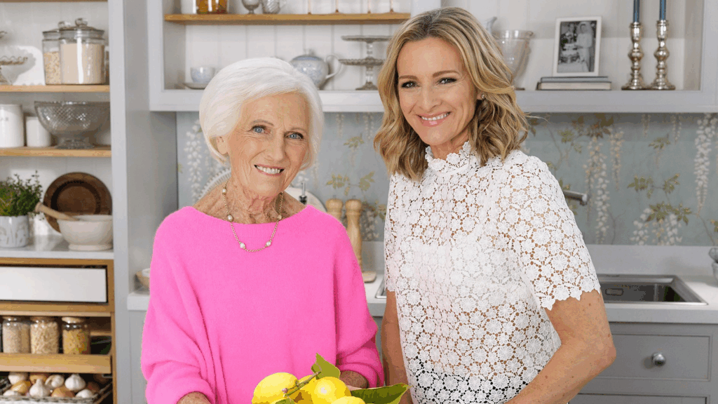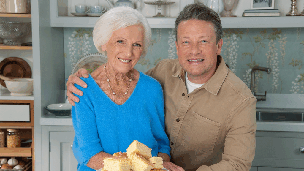Mary was joined in the series by Tom Allen, Gabby Logan, Jamie Oliver, Alex Jones, Alan Titchmarsh, and Kiell Smith-Bynoe, cooking both new recipes and reimagined classics with each guest. “There were moments of celebration and reflection throughout,” she recalls. “Toasting champagne with Jamie Oliver while sharing my lemon drizzle cake was unforgettable. Alan Titchmarsh baked his very first cake, and Alex Jones made my Victoria sponge with me — it’s always special to see someone recreate one of your recipes. But it wasn’t just about cakes; each episode features a variety of recipes with the guests.”