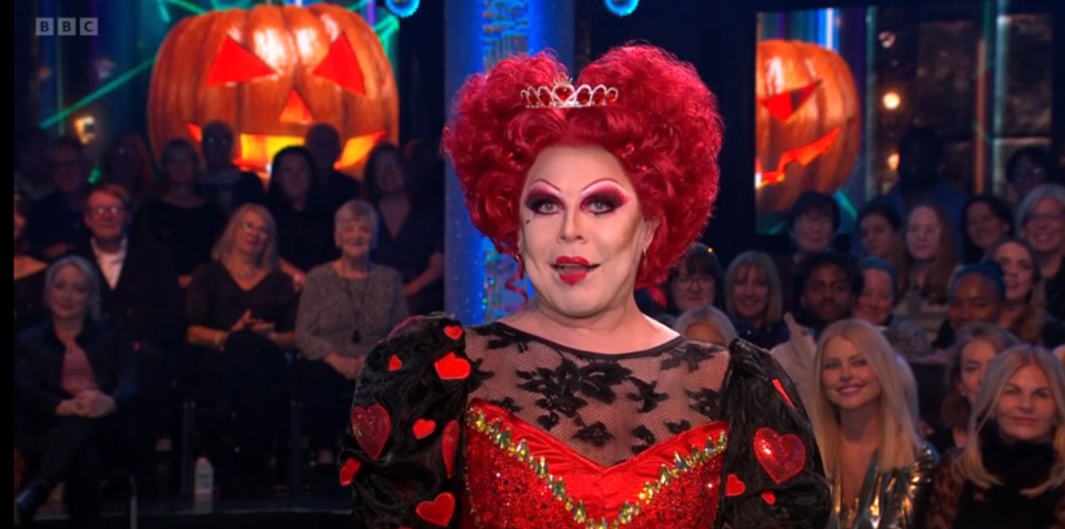 Dressed as the Queen of Hearts, La Voix addressed viewers: “So far this series, our next star has been a boxer, a bird lady, and Cher – quite the variety. Tonight, she’s taking on the Queen of Hearts for an Alice in Wonderland-inspired Paso Doble. It’s La Voix!”