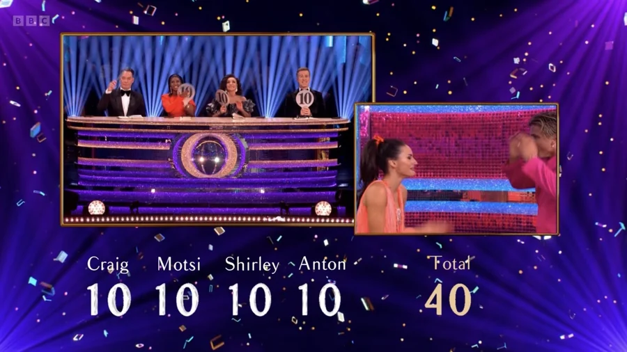 Amber Davies and Karen Carney each achieved perfect scores from all four judges — Shirley Ballas, Craig Revel Horwood, Motsi Mabuse and Anton Du Beke — leaving them jointly at the top of the leaderboard before the Instant Dance bonuses were added.