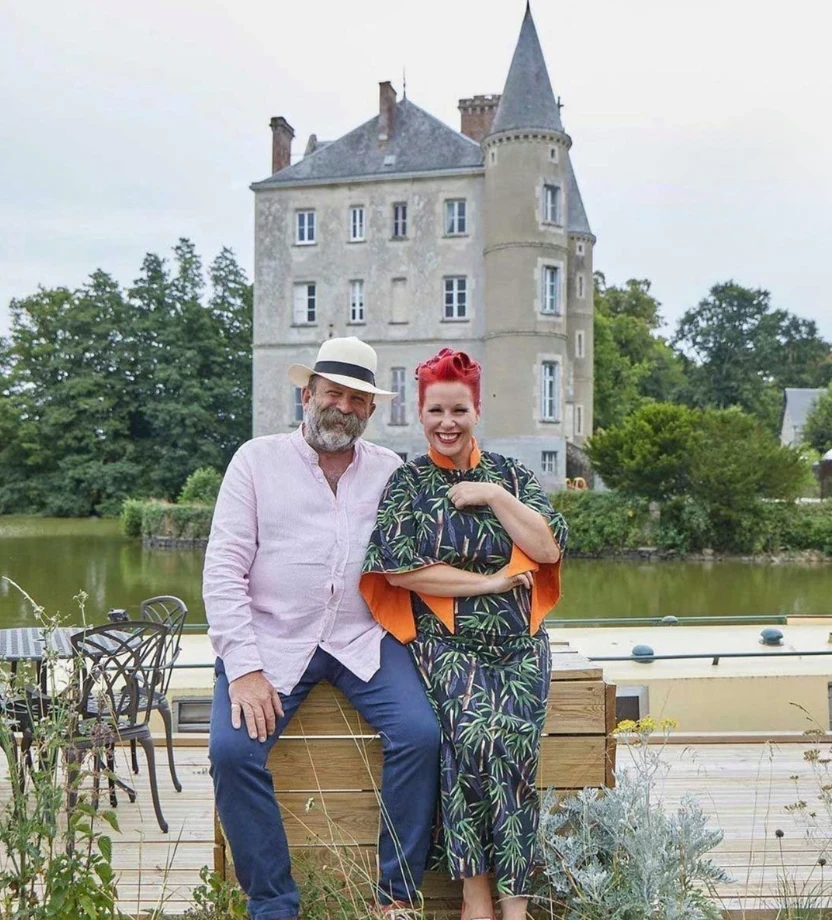 Angel and Dick first met in 2010 through their mutual friend and agent Sophie Laurimore, and five years later they exchanged vows at their newly purchased home, the striking Chateau de la Motte Husson—a bargain buy at £280,000.
