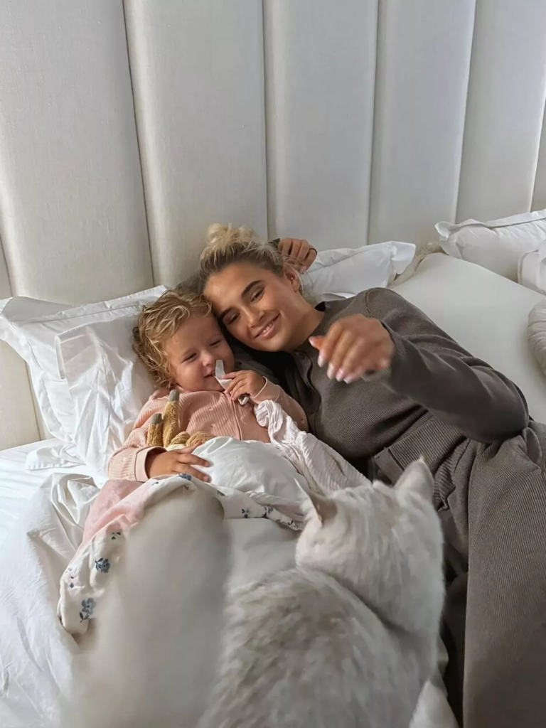 Reflecting on the challenging time, she continued: “I did say that Bambi wasn’t well, but we’ve been in the hospital this morning. About nine days ago, Tommy got what we thought was food poisoning or a sickness bug — we’re really not sure — and we’re nine days in now and it hasn’t gone away. Basically, last night at 3am, he was up… [TMI],” she said, highlighting the exhausting nature of caring for an unwell toddler and partner simultaneously.