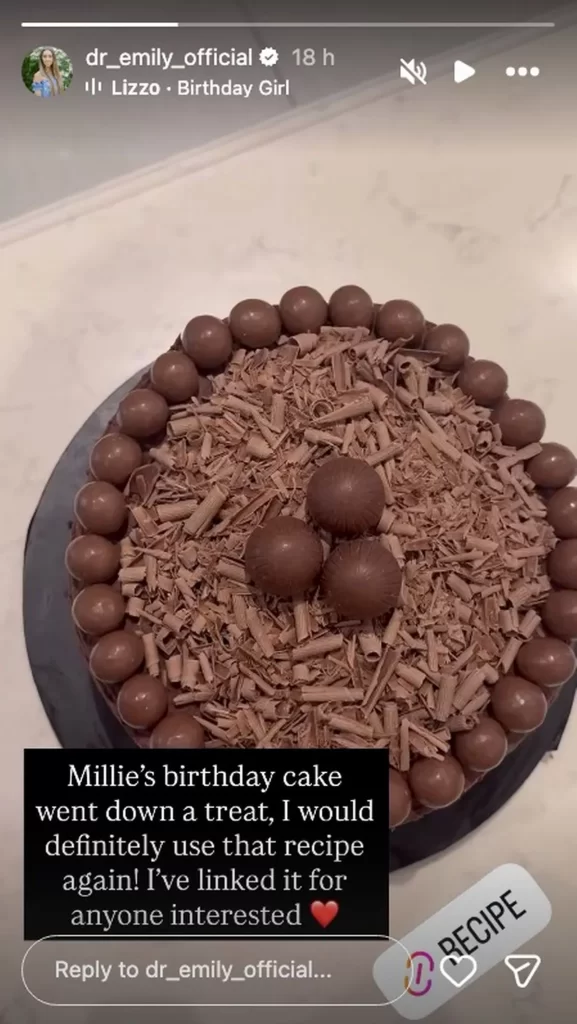 The comments section was filled with sweet messages, including one from Amelia’s older sister Princess Andre, who penned: “How is my sis so grown”. Another wrote: “Aww Happy Birthday Millie!” While a fan said: “Happy 12th birthday Millie,enjoy your special day,even though it’s a school day”.Meanwhile, Emily revealed she made Millie’s birthday cake, which “went down like a treat”. She filmed the large chocolate cake, decorated with chocolate icing, flakes of chocolate and Maltesers and uploaded the clip to her Instagram story, writing: “Millie’s birthday cake went down a treat, I would definitely use that recipe again! I’ve linked it for anyone interested.”
