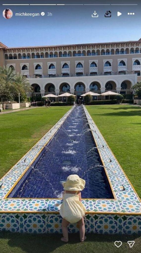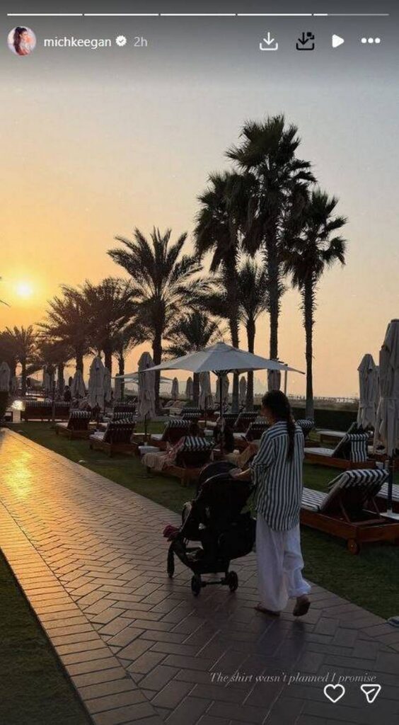 Snaps shared by Michelle showed the sun-drenched setting with palm trees and swimming pools, while one adorable shot showed baby Palma peering curiously at a water fountain, while dressed in a cute yellow outfit. In other snaps, Michelle is seen pushing her bundle of joy during a sunset stroll and lovingly rocking her daughter in her pram.